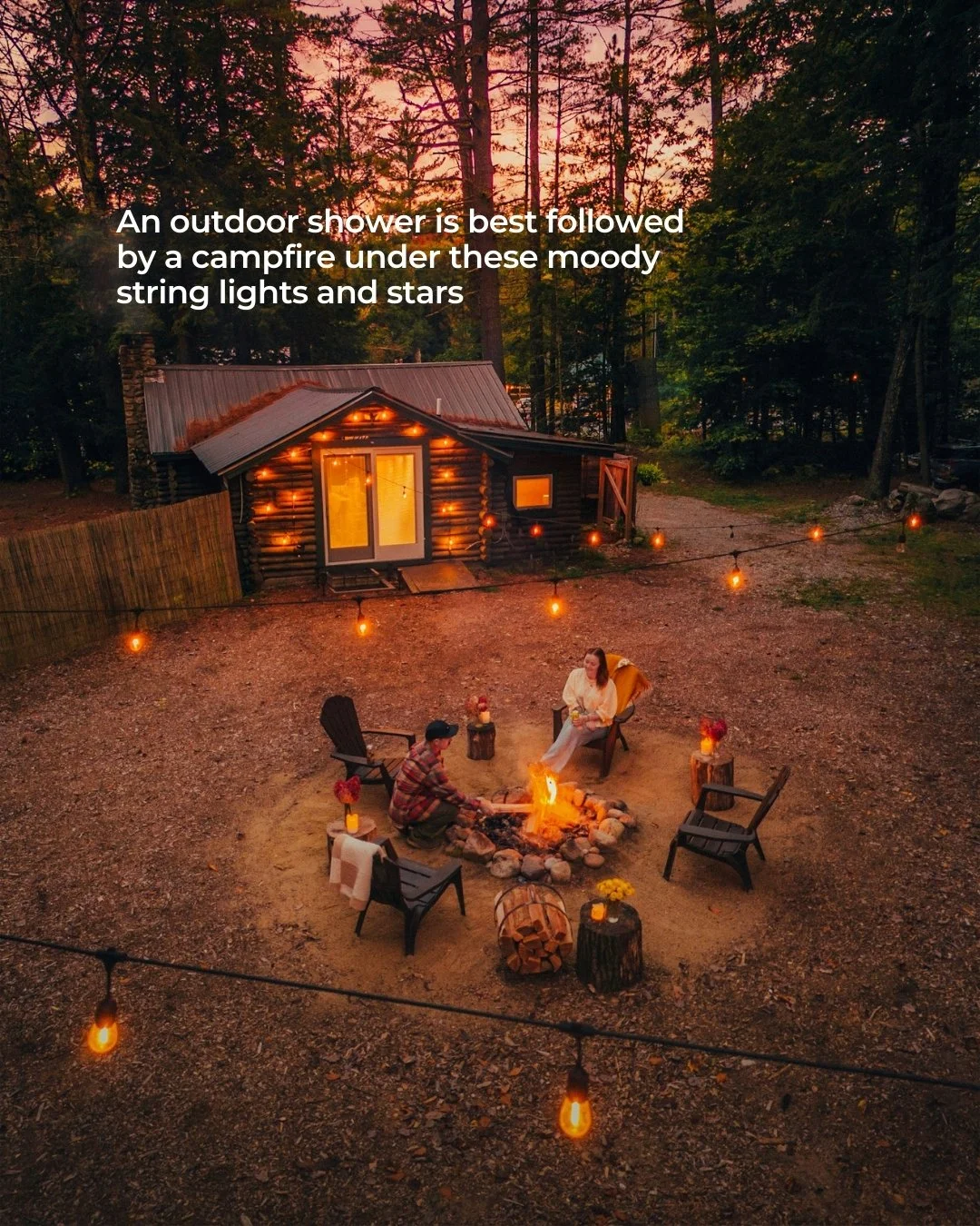 Evenings, slowed down. Campfires under string lights and a sky full of stars