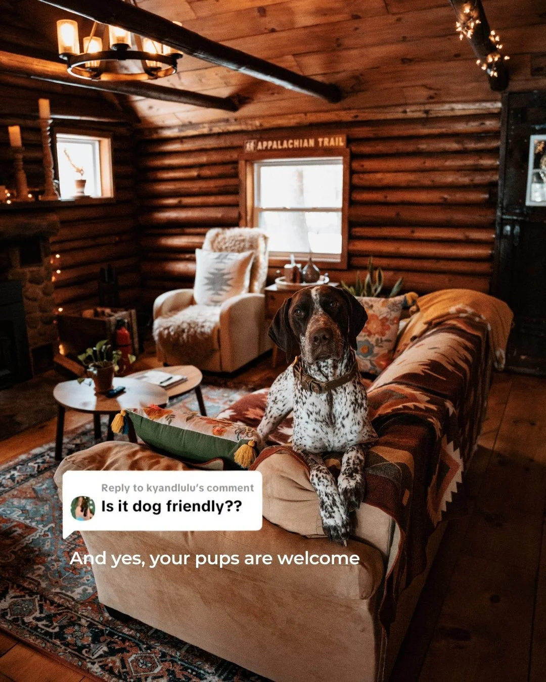 The Conscious Cabin is dog-friendly, which means your pup can join you for hikes, forest walks, and cozy evenings by the fire. Many guests say their dogs love the cabin just as much as they do and don’t want to leave.